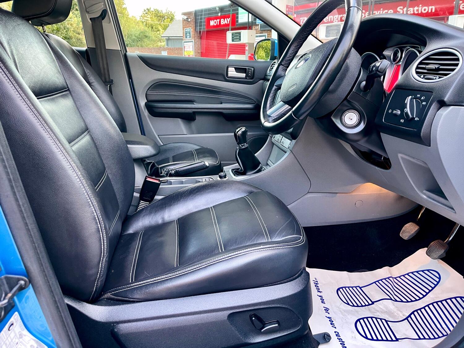 WOW check out this high spec Ford focus 1.6 TDCi. Titanium. Finished in Vision blue metallic with full black leather interior. Heated seats – Electric seats – Cruise control – Ford Sat- Nav upgrade – Bluetooth – Reversing camera – Climate Control – 4 x Electric windows with global closure – Heated Mirrors - 16” Titanium alloys – Ford demo model. Just £35 a year road tax and 50 + MPG. Above average condition and drives perfect.